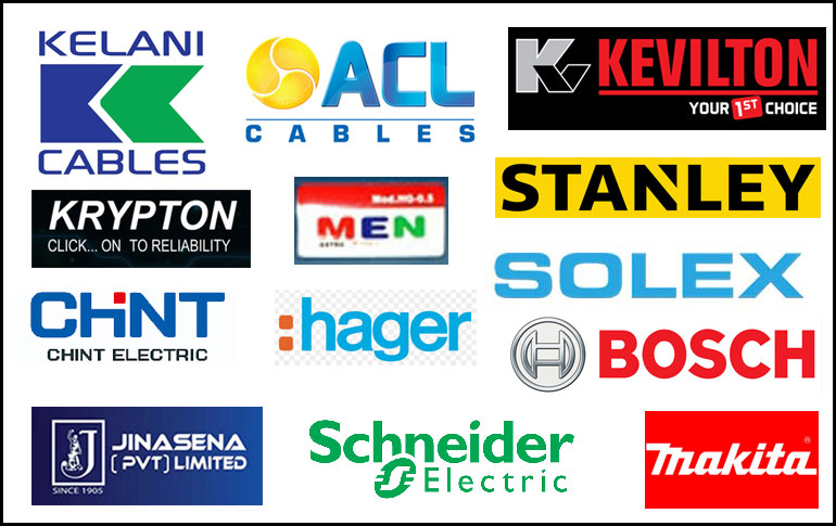 We provide these products for best price.. Kelani Cables, ACL Cables, Kevilton Switches, Orange, Krypton, Chint, Hager, Schneider, Makita, Bosch, Stranley, MEN Tools, Jinasena Pumps, Solex Pump